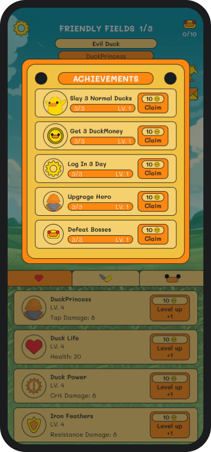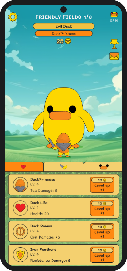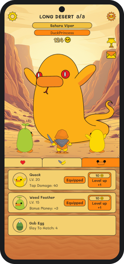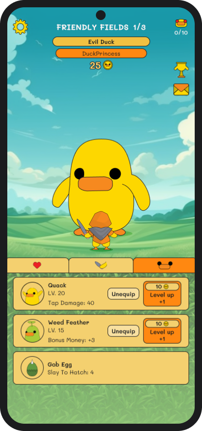 The world is surrounded by giant evil ducks, Tap and slay to turn them back to their previous form